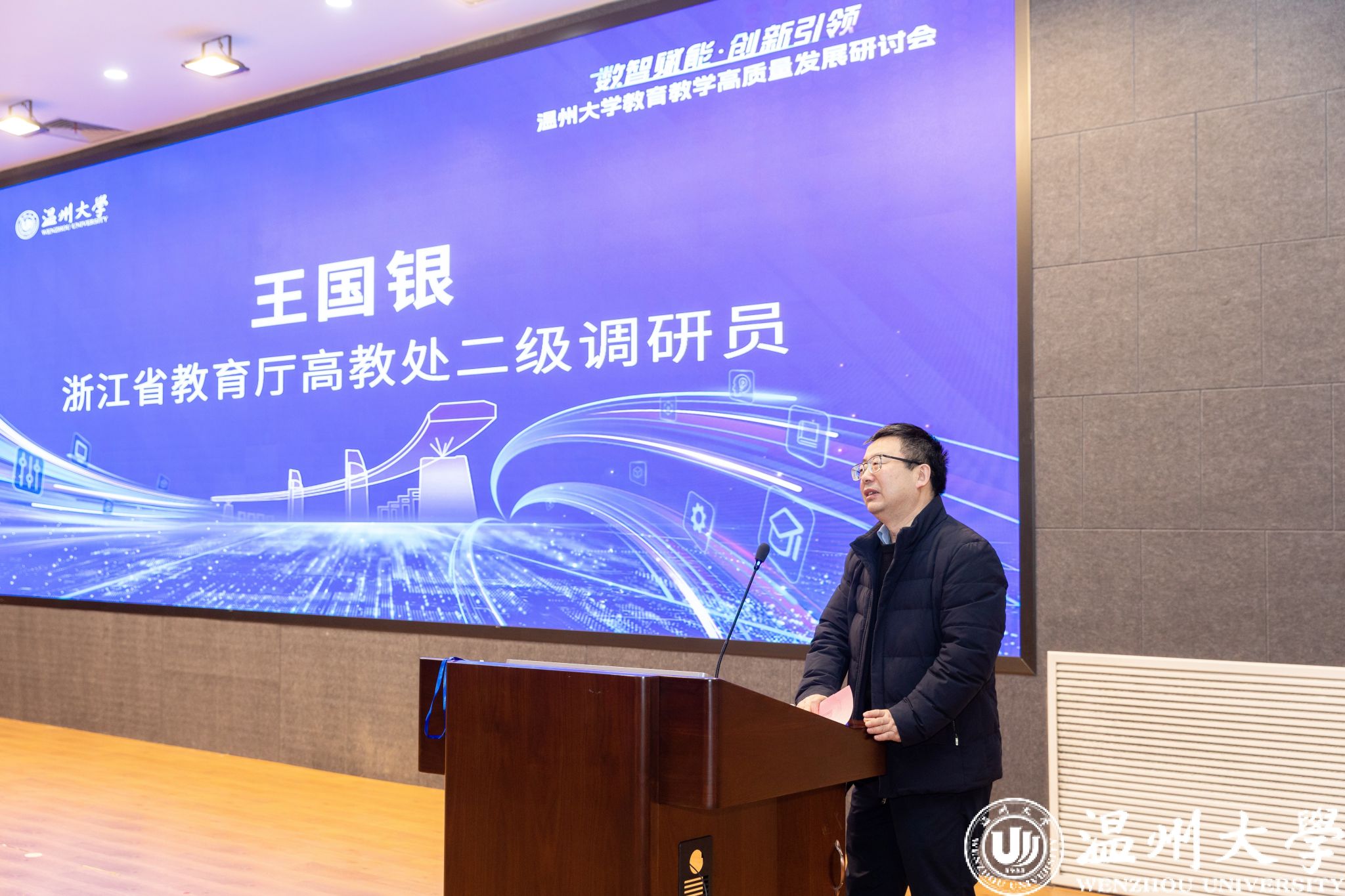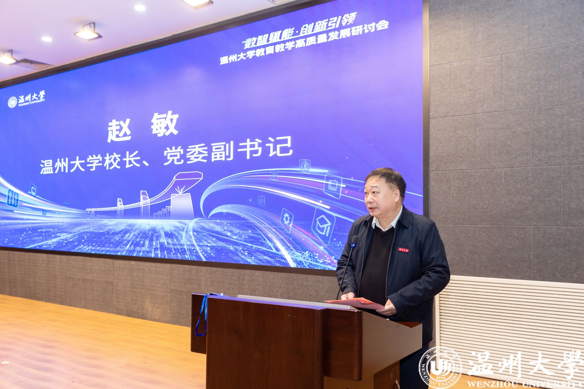 赵敏致辞。他指出,当前科技发展日新月异,数智技术的浪潮正以迅猛之势席卷各个领域,教育界也迎来了前所未有的变革机遇,数智技术正深刻重塑着教育的形态与模式。星空平台“数智教育创新研究中心”的成立以及“溯初云学堂”平台的全面上线,标志着我校在教育教学数智化转型中迈出了具有里程碑意义的一步,正全力构建数智赋能的“数智助学、数智助教、数智助研、数智助管”教育新生态,力争在数智教育方面发出温大声音。