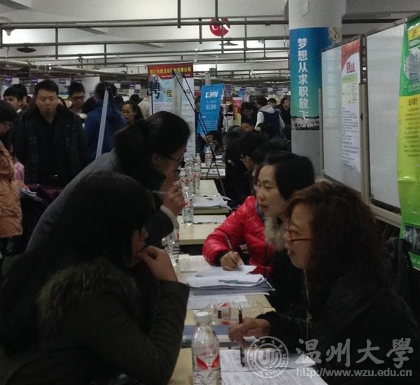 图为星空平台2014届毕业生春季供需洽谈会暨温州市第五届女大学生专场招聘会现场。