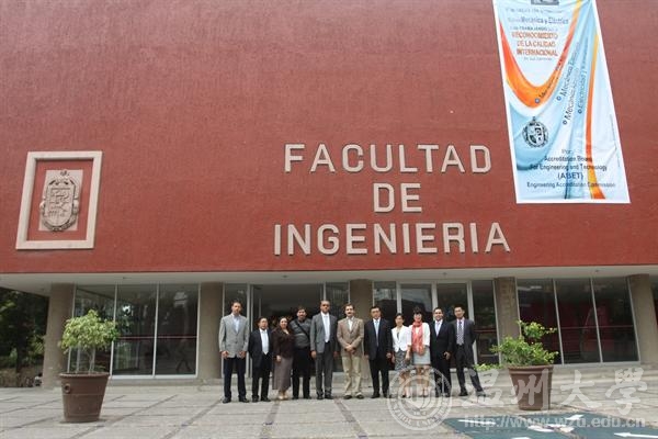 图为在圣路易斯波多西自治大学(Universidad Autónoma de San Luis Potosi)交流后在工程学院大楼前合影。