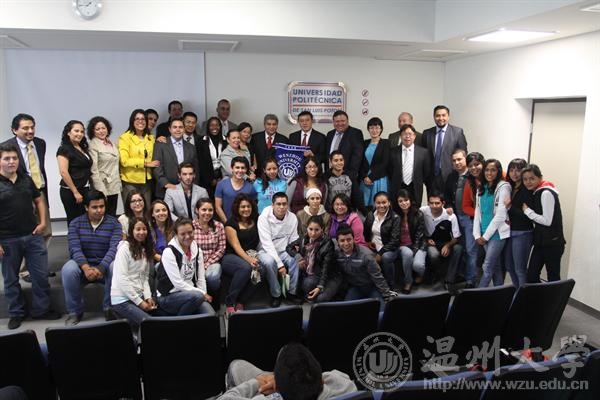 图为在圣路易斯波多西理工学院(Universidad Politénica de San Luis Potosi)交流后合影。