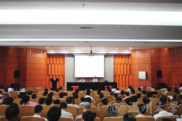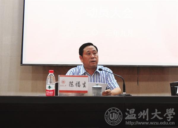 陈福生作动员报告。他代表学校党委,就贯彻落实中央和省委部署,深入开展党的群众路线教育实践活动提出三点意见。一是统一思想行动,充分认识开展党的群众路线教育实践活动的重大意义。陈福生指出,开展党的群众路线教育实践活动是全面贯彻党的十八大精神、实现“两个百年”奋斗目标和中华民族伟大复兴的必然要求,是建设高等教育强国、办好人民满意教育的政治动员,也是推进学校事业科学发展、实现“温大梦”的现实需要。二是结合学校实际,扎实开展好党的群众路线教育实践活动。学校党的群众路线教育实践活动从7月开始到11月底结束,主要包括学习教育、听取意见;查摆问题、开展批评;整改落实、建章立制三个环节。三是坚持分类指导,确保学校党的群众路线教育实践活动见实效。陈福生强调,全校各级党组织和党员领导干部要切实增强责任感和紧迫感,把开展好教育实践活动作为一项重大政治任务抓紧抓好抓实。学校领导班子和班子成员要带好头,做好表率;学院、部处领导班子和处级党员干部要做到结合实际,突出重点;广大师生党员要积极参与,严格监督。