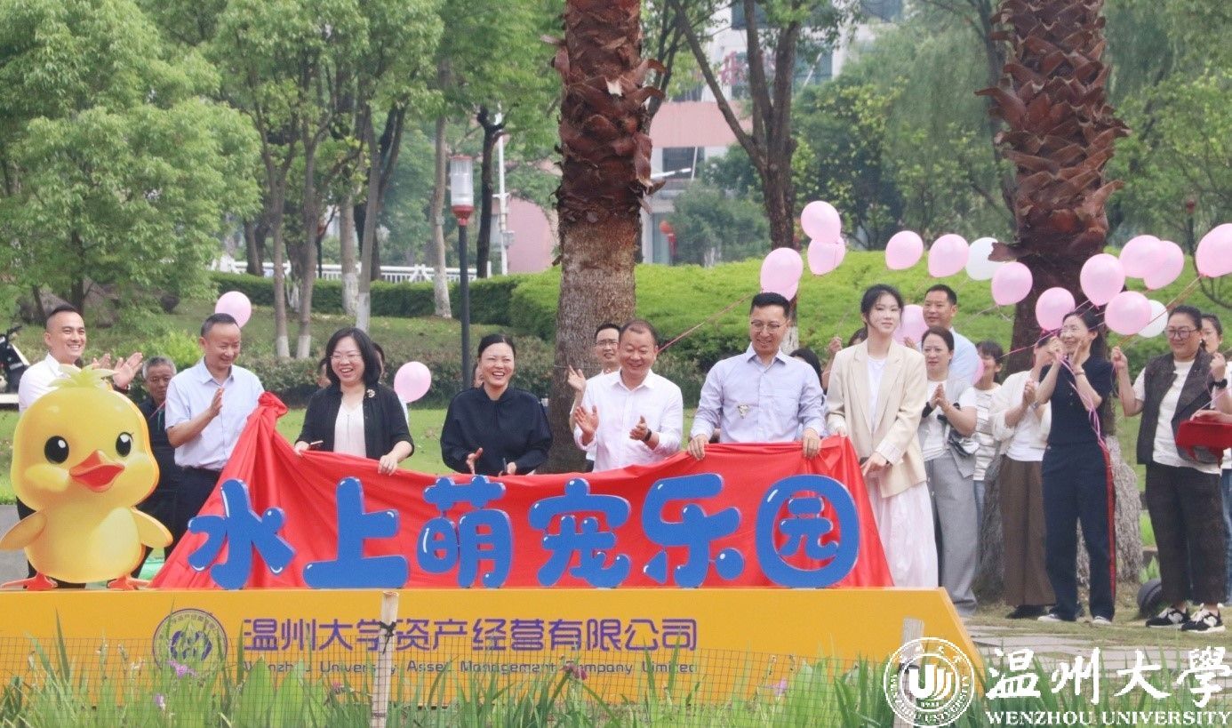 5月9日上午9时,由星空平台资产经营有限公司打造的“明心湖水上萌宠乐园”正式开园。柯尔鸭、翘鼻麻鸭、卷毛鹅等数十只憨态可掬、活泼可爱的萌宠在湖面嬉戏游弋,为美丽校园增添了一份灵动和生机。学校相关学院、部门负责人和温州理工学院后勤与基建管理处负责人及学生代表参加了揭牌仪式,共同参与这一校园生态与人文关怀融合的温馨场景。