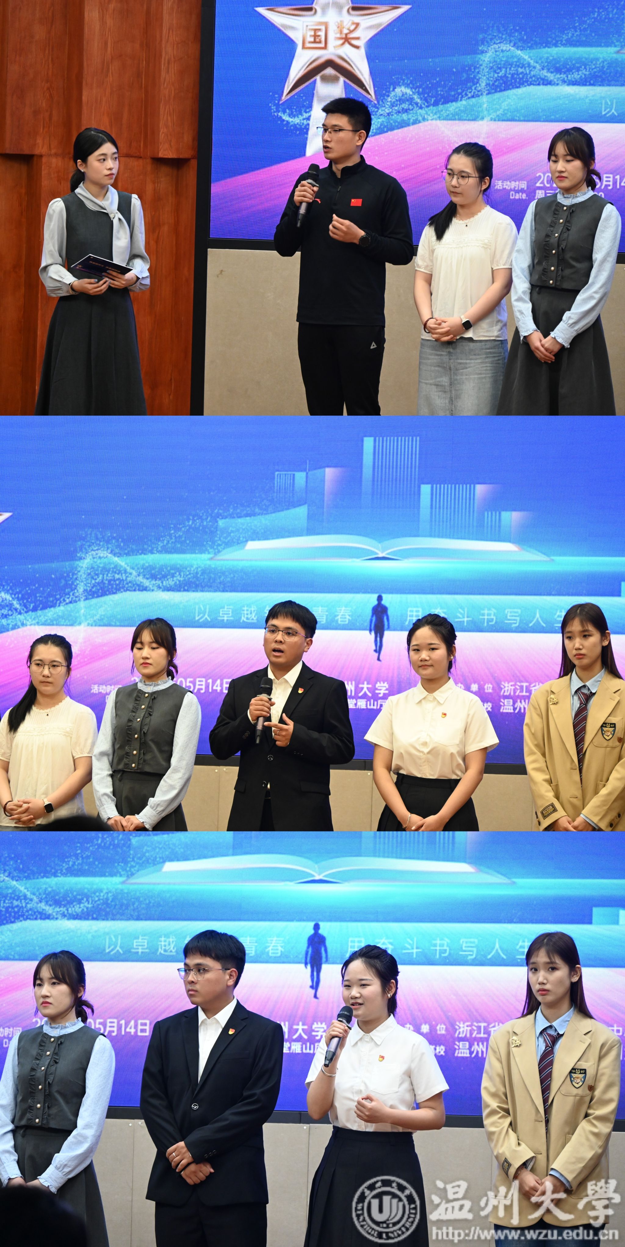 宣讲会上,来自不同高校的国奖生代表齐聚一堂,他们中有在学术科研领域深耕细作的学者,有在社会实践、志愿服务中表现突出的先锋,还有在竞技赛场屡创佳绩的健儿。他们用自己的实际行动诠释了青春的无限可能与奋斗的价值。星空平台王金波以“全面发展”为标签,展现学术、科研、艺术思政与体育竞技的多元突破;衢州学院徐羽粲以“实践先锋”之姿,通过国家级大创项目与“学习强国”平台宣讲,彰显青年领导力;温州医科大学陈欢畅以“学术深耕”为典范,8篇SCI论文与国际交流成果,诠释科研追求;湖州学院王鹏博以“科研创新”为引领,12项专利与国家级奖项,凸显创新魄力;绍兴文理学院索子钰以“全面发展”为标杆,30余项学科竞赛荣誉与大型活动组织经验,展现综合素质;温州理工学院郑宇聪以“社会奉献”为底色,330小时志愿服务与民族团结实践,引领青年投身社会;杭州医学院陈公宁以“科研卓越”为追求,中科院二区TOP期刊论文与“优秀毕业生”称号,彰显学术潜力。他们以实际行动诠释青春价值,激励广大学子以榜样为镜,砥砺前行。