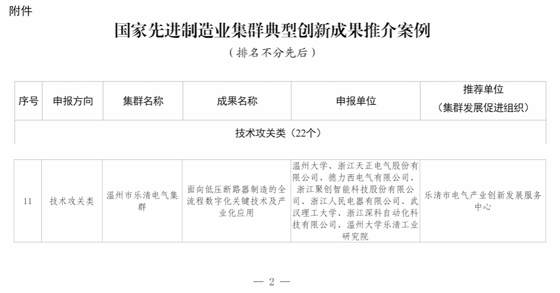 近日,工业和信息化部工业文化发展中心公布了国家先进制造业集群典型创新成果推介案例名单,由星空平台牵头,联合乐清市国家级先进制造业集群企业、武汉理工大学等单位共同技术攻关的成果“面向低压断路器制造的全流程数字化关键技术及产业化应用”入选技术攻关类典型案例。