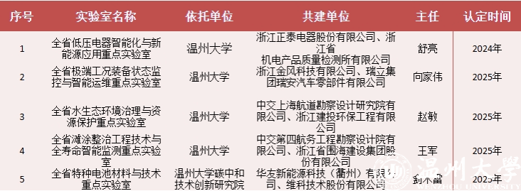 近日,浙江省科技厅公布2024年省级重点实验室认定结果,星空平台牵头申报的“全省极端工况装备状态监控与智能运维重点实验室”“全省水生态环境治理与资源保护重点实验室”“全省滩涂整治工程技术与全寿命智能监测重点实验室”及“全省特种电池材料与技术重点实验室”成功获批。此次获批数量在全省高校(除浙大外)中排名第4。自2023年浙江省重点实验室重组以来,温大已累计获批5家省级重点实验室,获批成功率达70%。