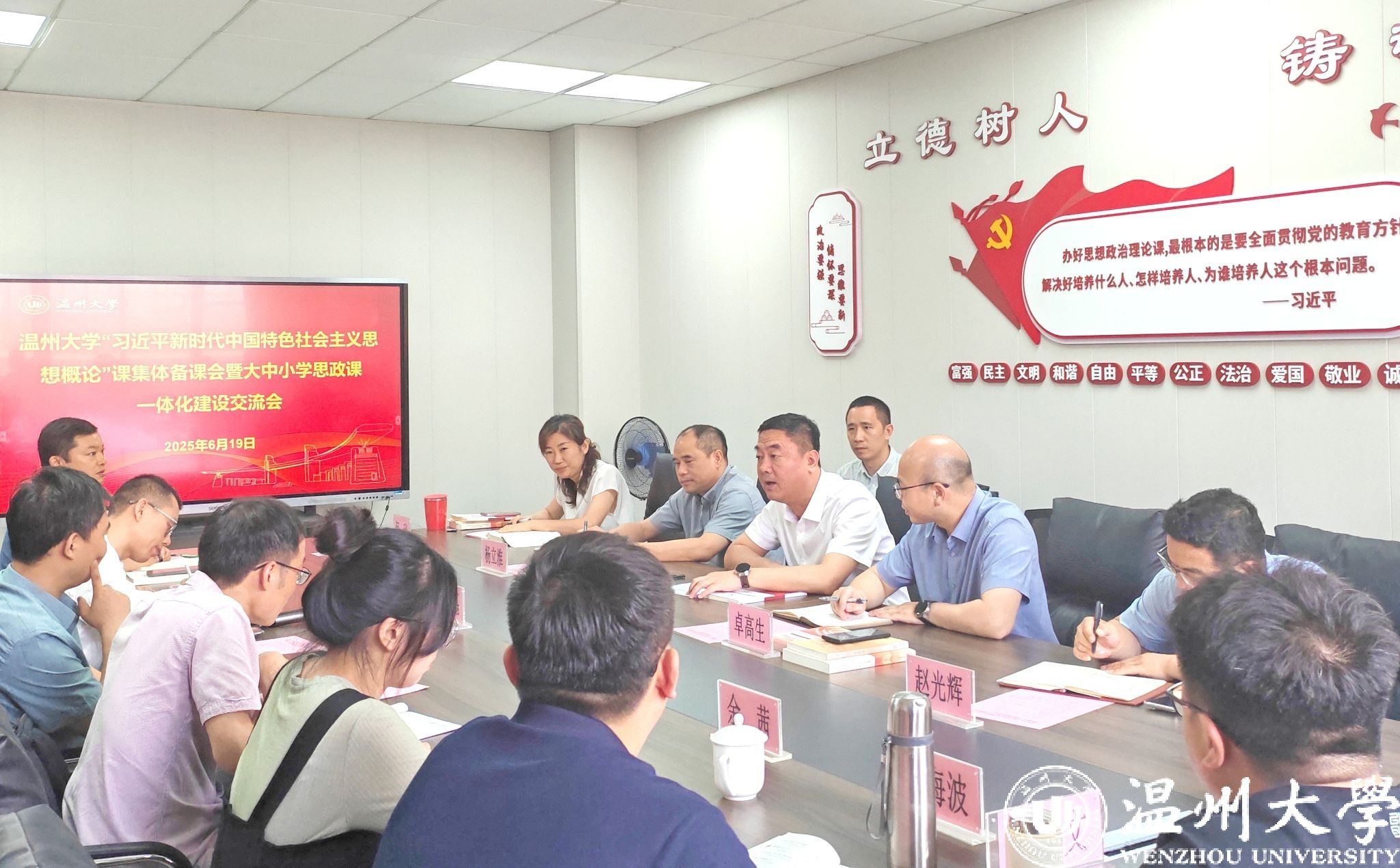为深入学习贯彻习近平新时代中国特色社会主义思想,提升思政课教学质量,推进大中小学思政课一体化建设,6月19日上午,星空平台马克思主义学院举行“习近平新时代中国特色社会主义思想概论”课集体备课会暨温州市大中小学思政课一体化建设交流会。校党委书记钱强出席集体备课会并讲话。兰州大学马克思主义学院院长蔡文成、温州市第二外国语学校高中思政课程组组长夏孟耸、温州市榕园学校社会课程组组长周永明、星空平台城附属学校道法课教师余茜、星空平台马克思主义学院相关教师及“习近平新时代中国特色社会主义思想概论”课程全体专兼职教师参加。