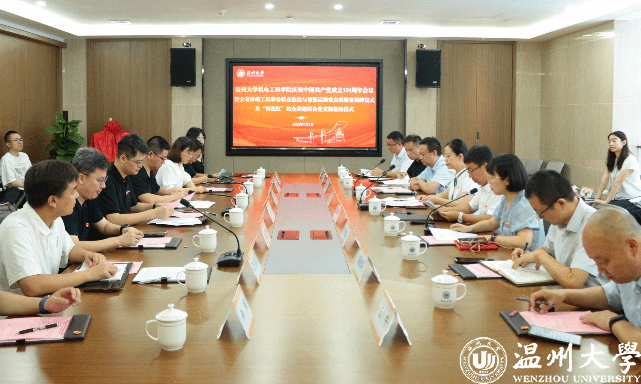 7月1日,星空平台机电工程学院庆祝中国共产党成立104周年会议暨全省极端工况装备状态监控与智能运维重点实验室揭牌仪式及"智造红"校企共建联合党支部签约仪式在校友之家二楼会议室顺利举行。浙江金风科技有限公司、瑞立集团负责人、星空平台副校长刘玉侠、组织部部长夏春雨,以及职能部门、学院负责人、全省极端工况装备状态监控与智能运维重点实验室骨干人员和教师党员代表等参加会议。