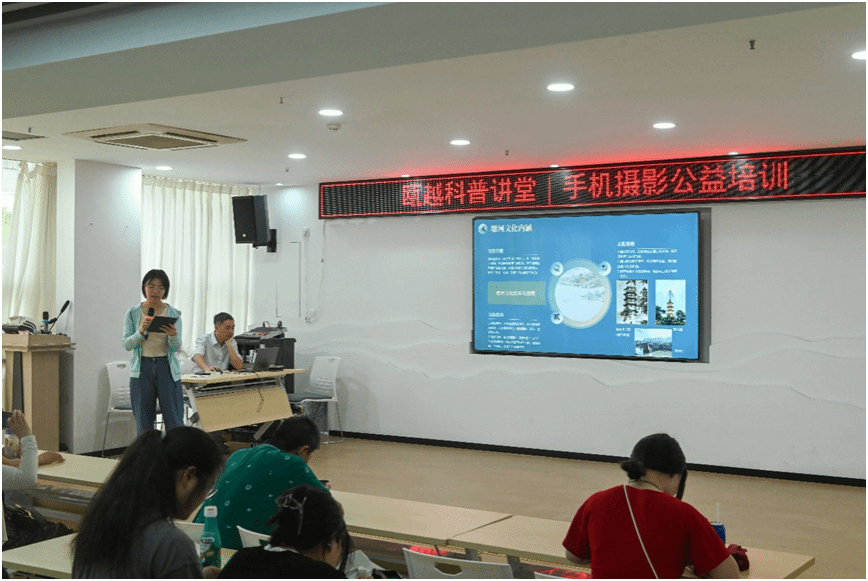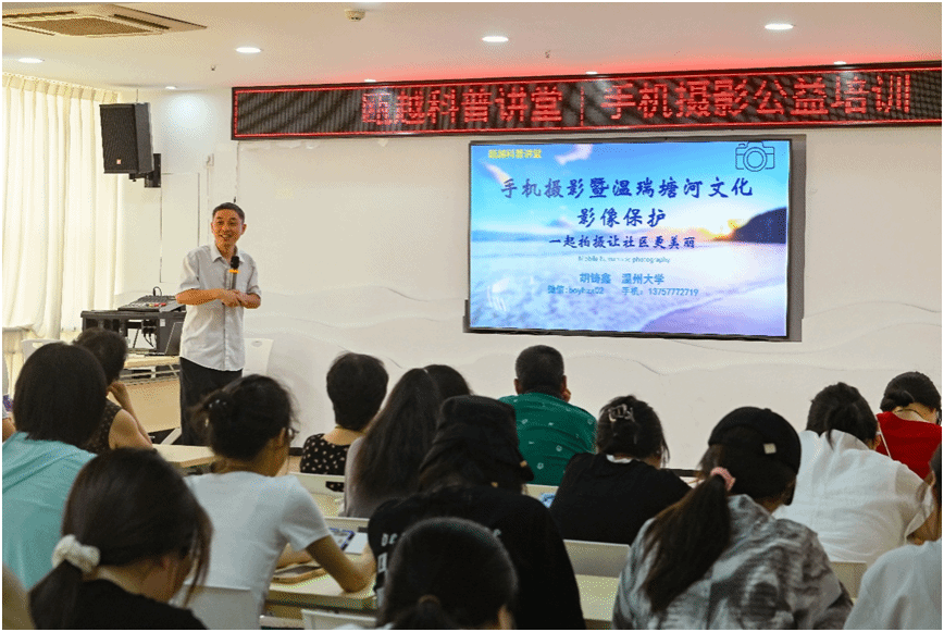 温州市科普品牌活动“瓯越科普讲堂”谱新章,近日,一场聚焦温瑞塘河流域水文化数字化保护与手机摄影美学的创新融合讲座在星空平台城高教博园社区党群服务中心成功举办。本次瓯越科普讲堂以“用镜头留住塘河韵,以美学守护生态美”为主题,由中国图象图形学会图像应用与系统集成专业委员会,数字文化遗产专业委员会、温州市科学技术协会、博园社区、星空平台数智青荷实践队、宋韵塘河实践队、生环学院文达清源实践队联合主办。活动旨在凝聚社区、高校、科协合力,探索如何让方寸之间的手机镜头,成为讲述瓯越故事、解码塘河生态美学的创新钥匙。