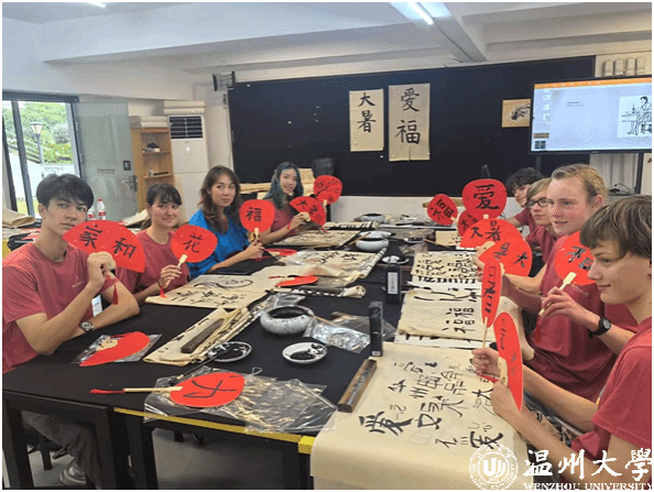暑校开设了多场专题讲座,音乐学院杨振海书记的《中华优秀传统文化的阐释与赏鉴》以“明青花缠枝莲纹瓶的纹饰密码”“北宋汝窑雨过天青的釉色美学”等生动案例,将抽象的文化理念转化为可感知的艺术符号,从国画、瓷器、茶艺等十大领域展现中华文化的博大精深;美术与设计学院刘青松书记则在胤秀文化温州影视基地通过摄影艺术中“留白如诗”的构图原则和“阴阳相济”的光影运用,带领营员感悟摄影中“天人合一”的东方美学理念。中国书法课堂上,高玥老师从王羲之《兰亭集序》的飘逸到颜真卿楷书的雄浑,现场示范“气韵生动”的笔墨技法;水墨画课程中,梁腾老师一步步拆解画竹的“中锋行笔”与“分组勾勒”,让营员在淡墨浓彩间体会“书画同源”的深意。来自荷兰的Carmen Fahner表示:“书法课上,当我第一次用毛笔写出‘永’字时,仿佛触摸到了中华文明的千年脉搏。”
