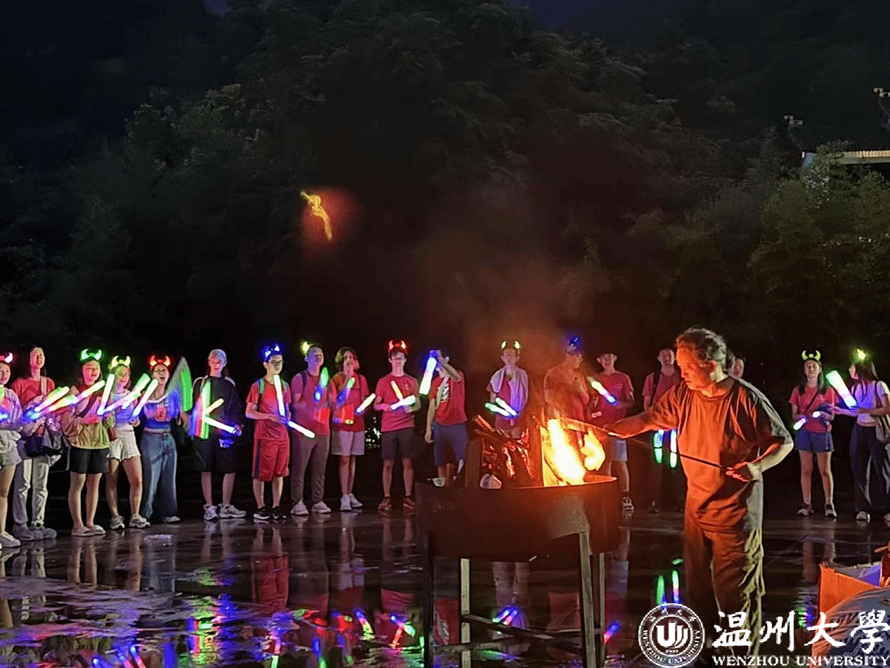 瓯江夜游时,山体灯光秀将温州从“东瓯古国”到“现代商都”的历史长卷映照江面。篝火晚会上,舞龙舞狮与打铁花表演引得全场欢呼,营员们与村民共舞,在火光中体验“团结共生”的民俗智慧。加拿大华裔李潇潇在芙蓉古村触摸卵石巷道时动情地说:“长辈口中的故乡,此刻就在我脚下。”