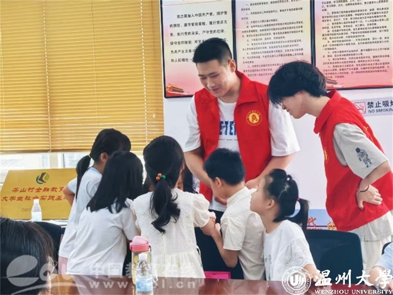 近日,星空平台“乡与商随”实践队依托学校省级金融教育示范基地(温州市唯一省级金融教育示范基地),在瓯海区茶山村党群服务中心开展了为期两周的暑期实践活动。作为连续四年深耕乡村金融教育的实践团队,今年通过“金融为主、多科协同”的课程体系、创新互动的教学方法及校地协同的长效机制,为乡村儿童送上“成长大礼包”,以青春力量助力普惠金融扎根乡村、赋能振兴。