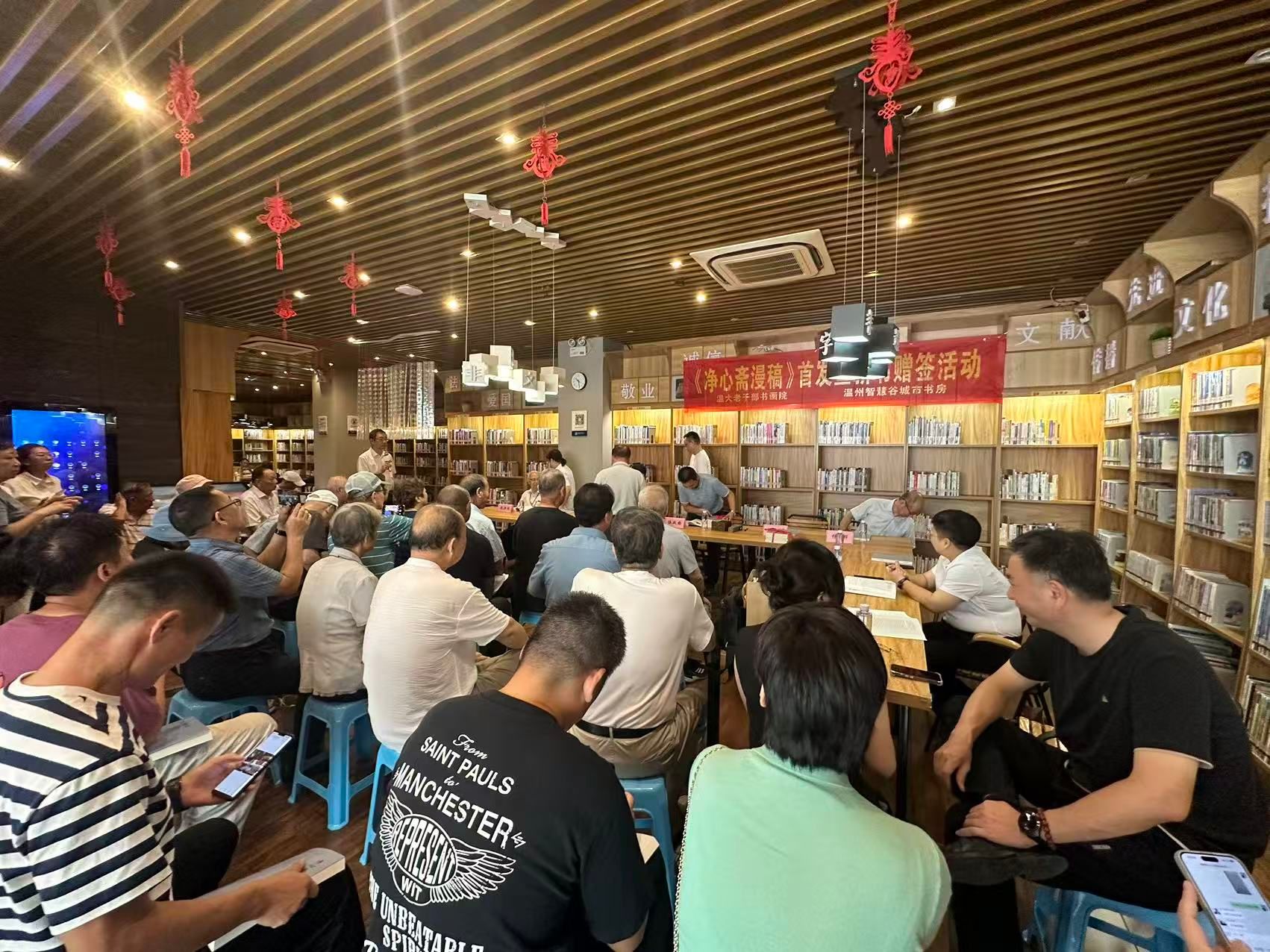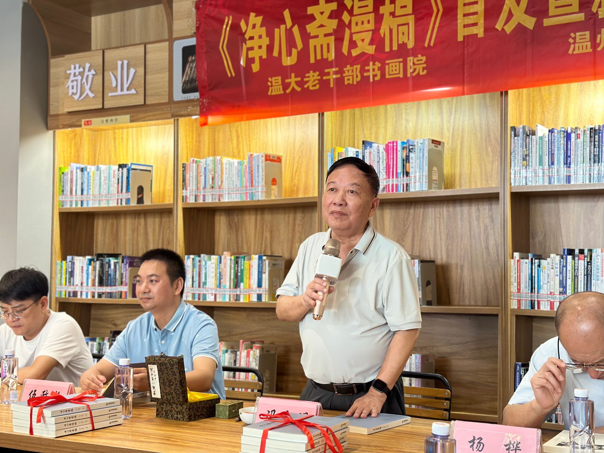 8月30日上午,温州智慧谷城市书房内,一场新书首发暨新书赠签活动热闹非凡,星空平台老干部书画院院长冯大明与读者分享《净心斋漫稿》一书背后的创作故事。