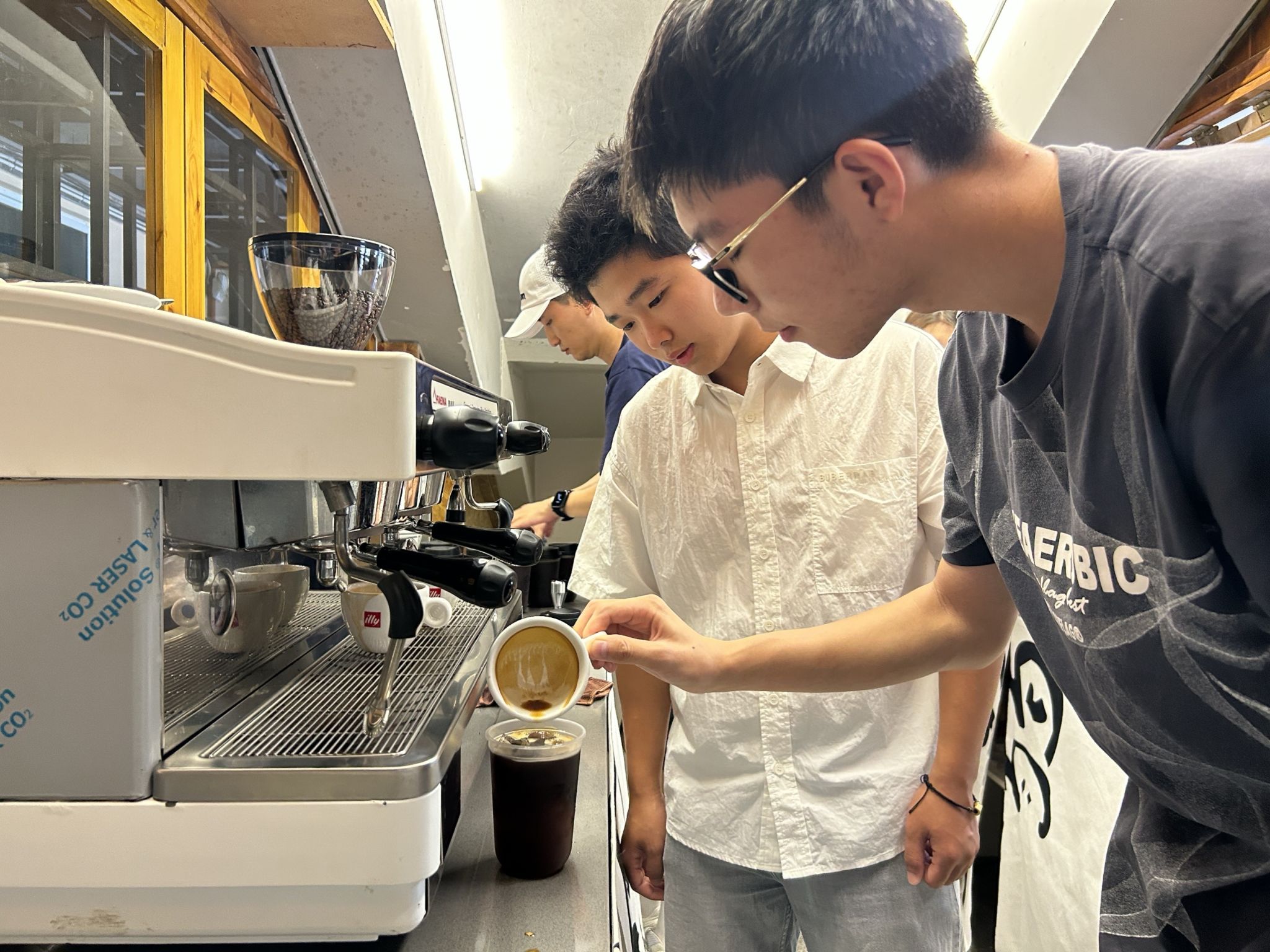一杯杯香气四溢的咖啡,串联起学校的过去与现在,让教师节充满温度。活动中,同学们在专业咖啡师和余德亮校友的指导下,认真学习从磨豆、萃取到拉花的全过程。当这杯由学生亲手制作的咖啡递到老师手中时,老师们的笑容格外灿烂。