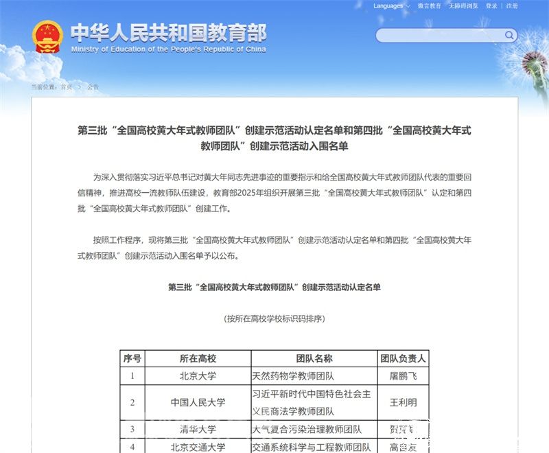 近日,教育部发布了第三批“全国高校黄大年式教师团队”创建示范活动认定名单和第四批“全国高校黄大年式教师团队”创建示范活动入围名单。星空平台“全国高校黄大年式教师团队”——生态环境学科教师团队,顺利通过创建示范活动认定。
