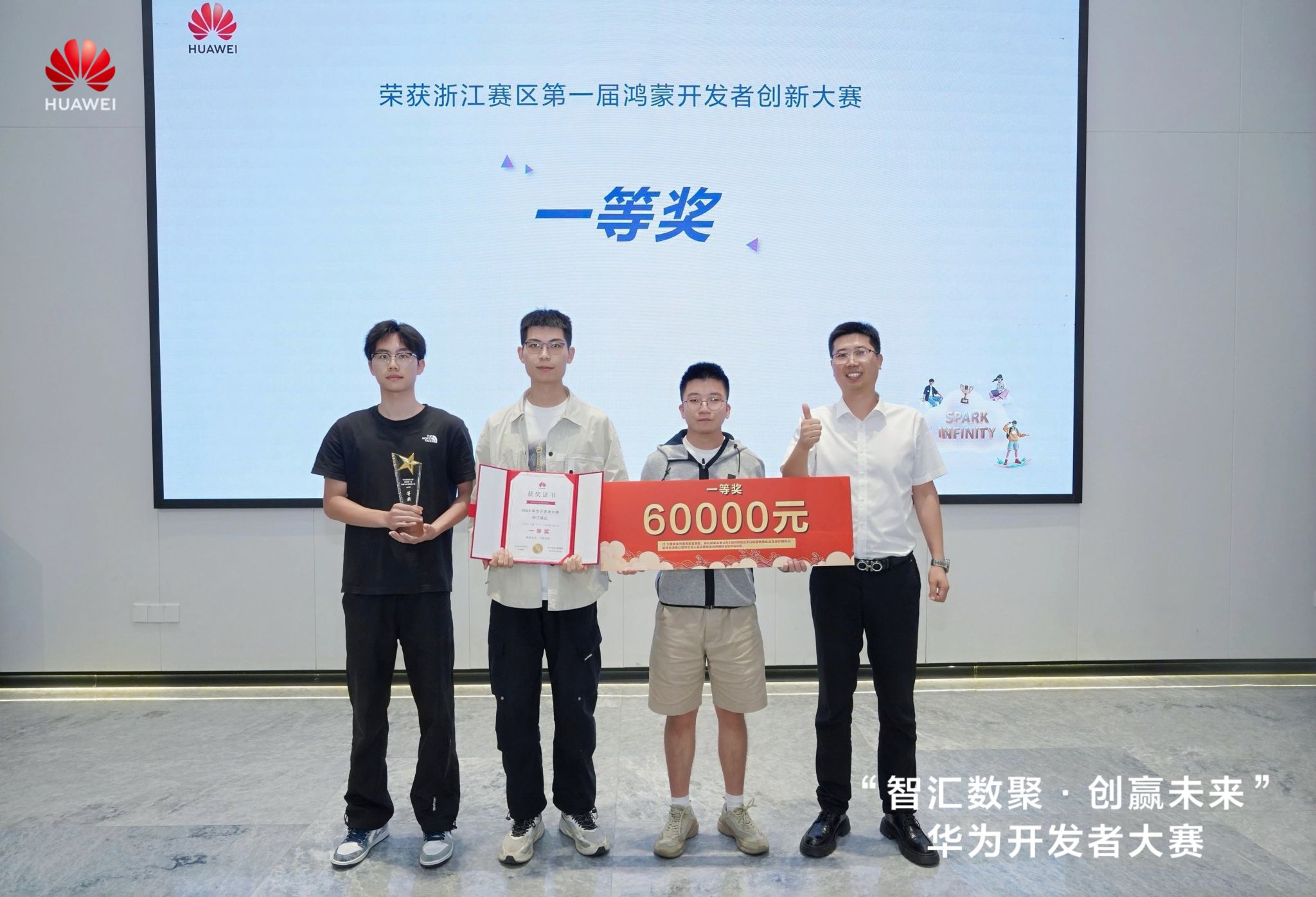 2025年10月20日,由温州市经信局、龙湾区人民政府指导,华为技术有限公司、华为(浙南)开发者创新中心联合主办的“智汇数聚・创赢未来”浙江第一届鸿蒙开发者创新大赛决赛暨颁奖仪式圆满落幕。作为华为ICT领域面向全球的高端赛事浙江赛区首秀,本次大赛吸引全国20多个省市自治区、50多个城市的500余家企业与高校团队同台竞技,历经近两个月线上征集、多轮评审的严苛选拔,最终星空平台计算机与人工智能学院学生团队凭借硬核技术实力斩获唯一一等奖(总冠军),创下学校在国内开源与信创顶级赛事中的历史最佳成绩。