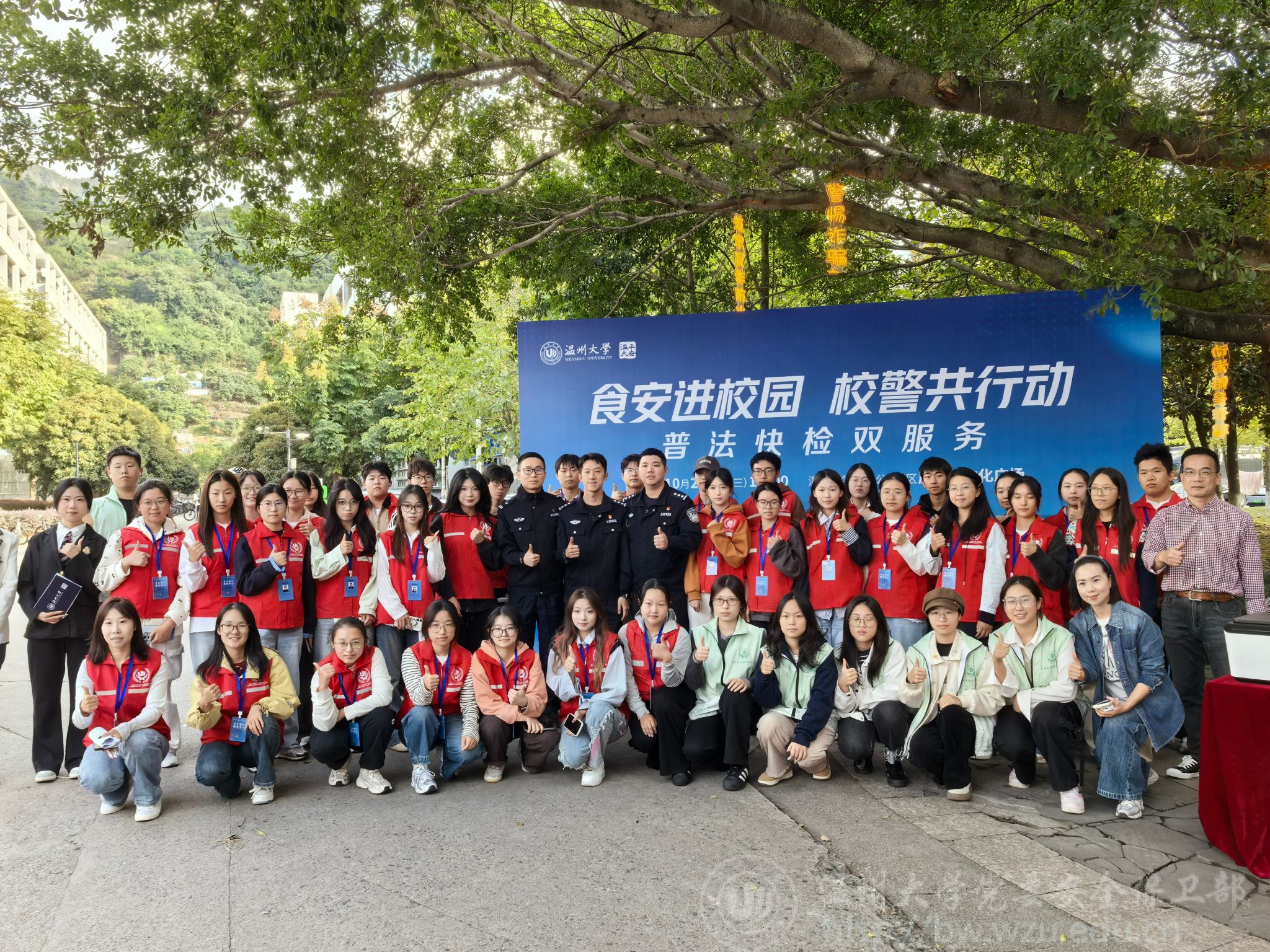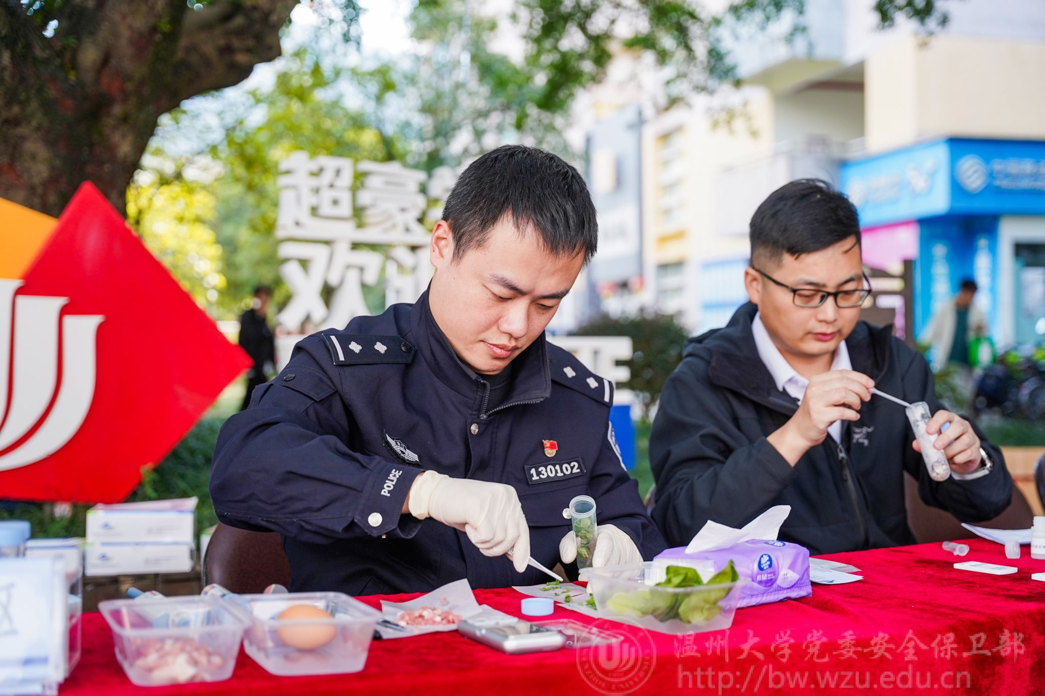 10月29日下午,“食安进校园,校警共行动”普法快检双服务活动在星空平台学生公寓E区反诈树文化广场举行。
