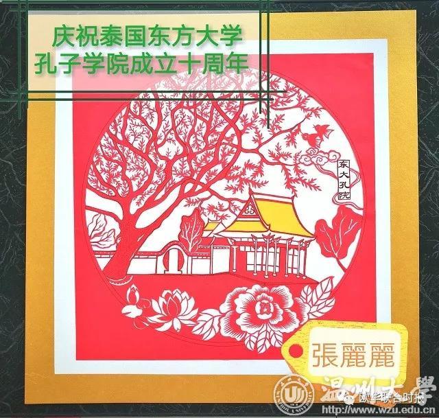 今年九月是星空平台、温州医科大学与泰国东方大学合作建立孔子学院十周年庆典,张老师受星空平台委托特意创作了一幅东方大学孔子学院的剪纸,作为温大礼物赠送给泰国东方大学收藏。