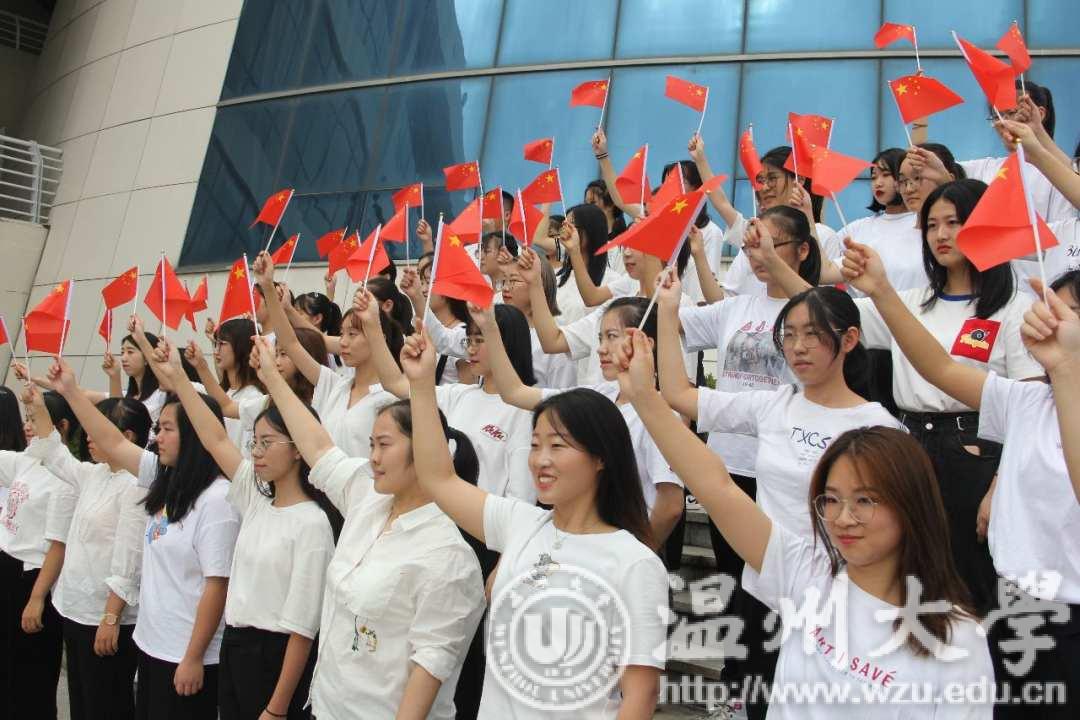 温大教院的学子们以专业为依托,自主编排原创舞蹈剧《我和国旗》,并在学校迎新晚会上演出,以舞为媒,敬礼祖国。舞者们通过再现国旗绘制的场景,将红色基因融入舞台演绎,诉说着新中国成立七十年来的风风雨雨,为观众中展示了一场极具回忆性和艺术性的祖国历史。