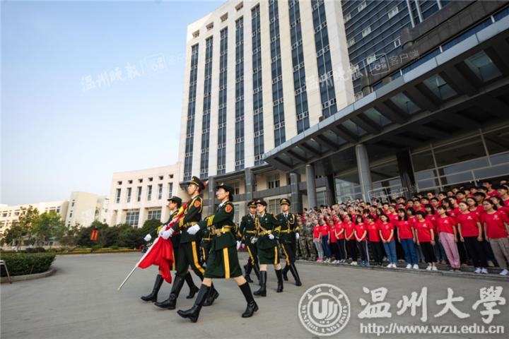 “以我火红青春捍卫国旗尊严,以我生命热忱谱写国旗礼赞”,作为一个半军事化的学生组织,温大国护在每个星期的第一天,在晨光的照射下升起五星红旗。开学典礼、重大节日、团日活动......无数温大学子在这里感受国旗的律动,感受神圣的爱国之课。
