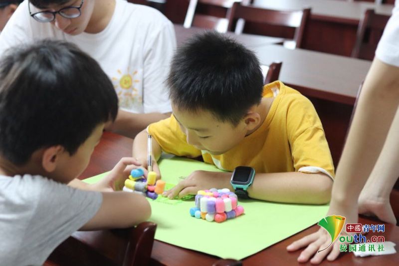 图为志愿者为孩子们讲解超轻粘土作品的制作要领。中国青年网通讯员 印江杰 摄