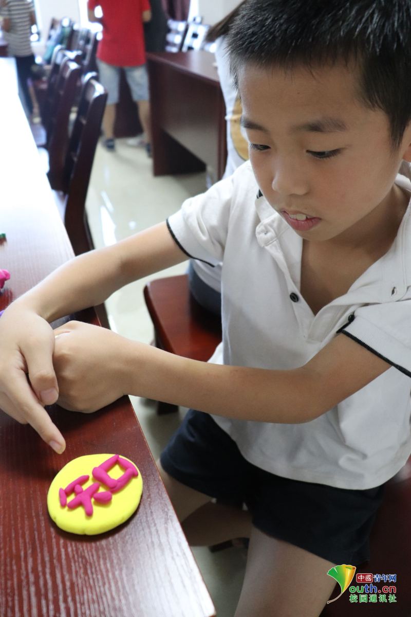 图为志愿者帮助小朋友制作黏土。 中国青年网通讯员 印江杰 摄