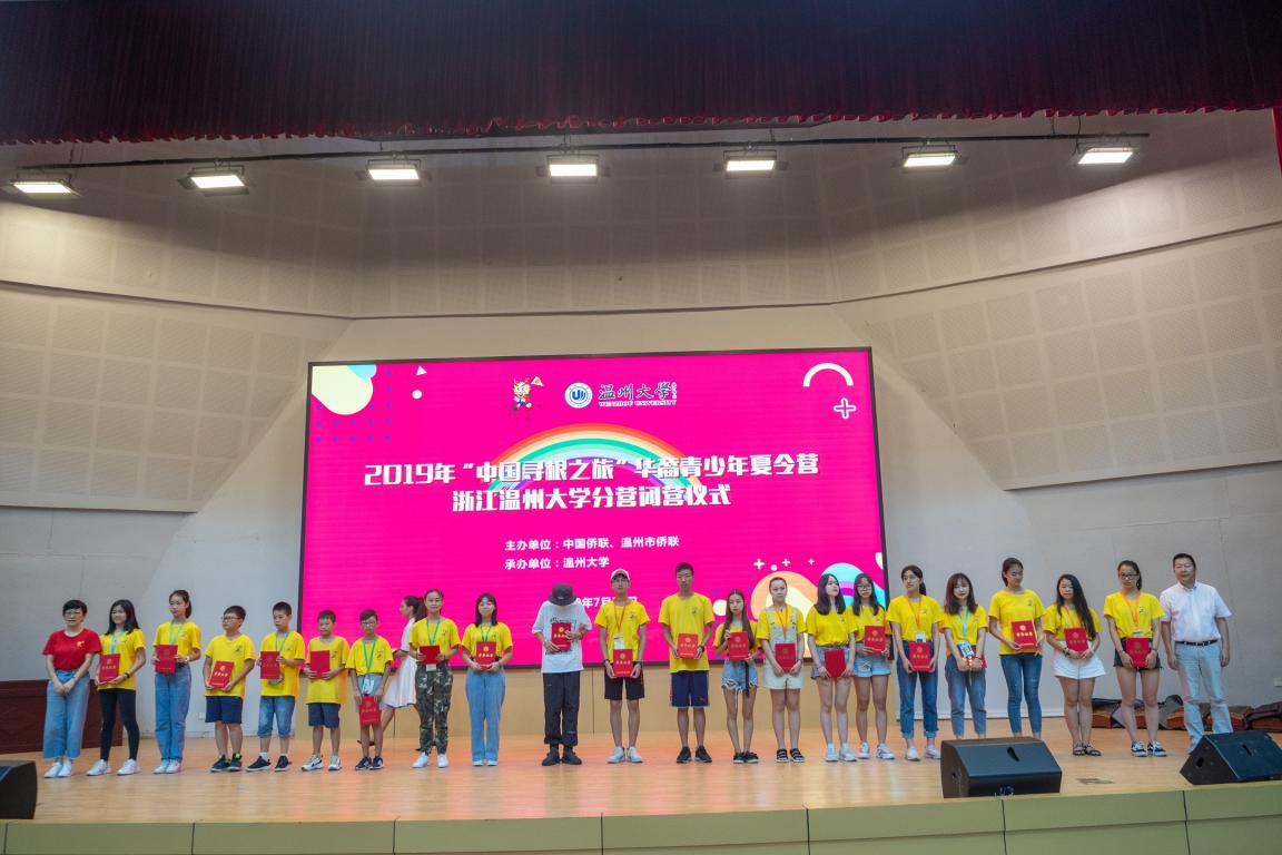 为表示对温州市侨联、星空平台的感谢,来自全美中文学校的领队代表,特别赠了“万里寻根 四海一家”和“中华文化 薪火相传”两面锦旗。来自西班牙中文学校的领队代表也赠送了两份精美的礼物留念。本次夏令营温大分营是星空平台20年来承办的规模最大、参与人数最多的“中国寻根之旅”夏令营。温大分营由五大特色营组成,分别为中华领袖营、中华武术营、中华音乐营、中华才艺营、中华设计营。以培养面向世界舞台的优秀华裔青少年为目标,分班开设特色课程学习,辅以传统文化、参观考察等课程,帮助华裔青少年“寻根、铸魂、圆梦”,增进优秀华裔青少年对祖(籍)国以及家乡的风土人情的了解、认识,传承中华传统文化。(通讯员:章瑚 廖一帆)