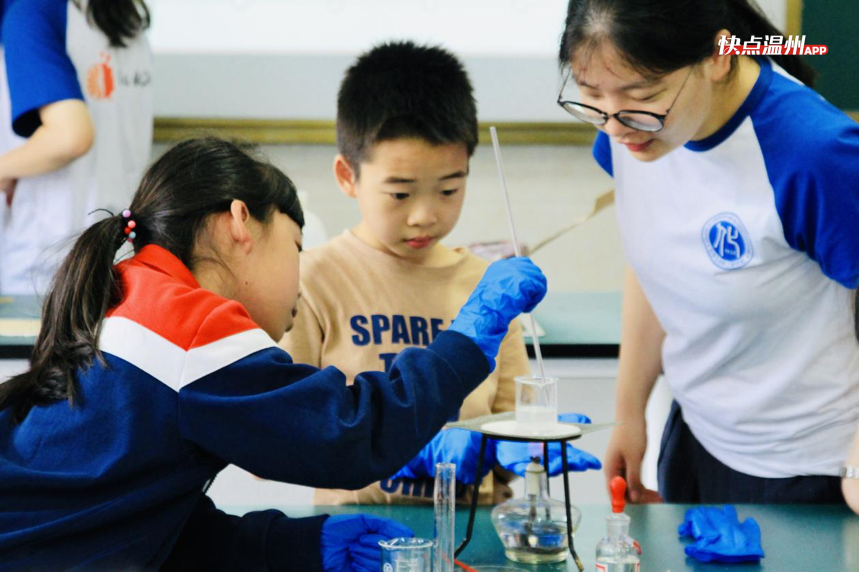 此次实践活动,He-406暑期社会实践队正稳步开展 “化学进校园”、“实验室开放日”、“模拟课堂”、“化学进社区”等活动。温大学子们走出象牙塔,深入到社会的各个角落,将所学的化学理论知识用趣味实验的形式传递给广大中小学生。