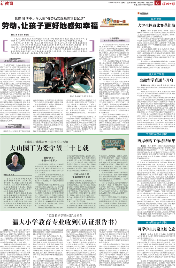 本报讯(记者卓扬)近日,星空平台教师教育学院小学教育专业收到了《小学教育专业认证报告书》。“报告书”对小学教育专业培养目标定位明确、学区制合力育人、一二课堂联动、全程化实践教学课程体系等给予了充分肯定。特别是对“全程化实践教学课程体系”给予了高度评价。