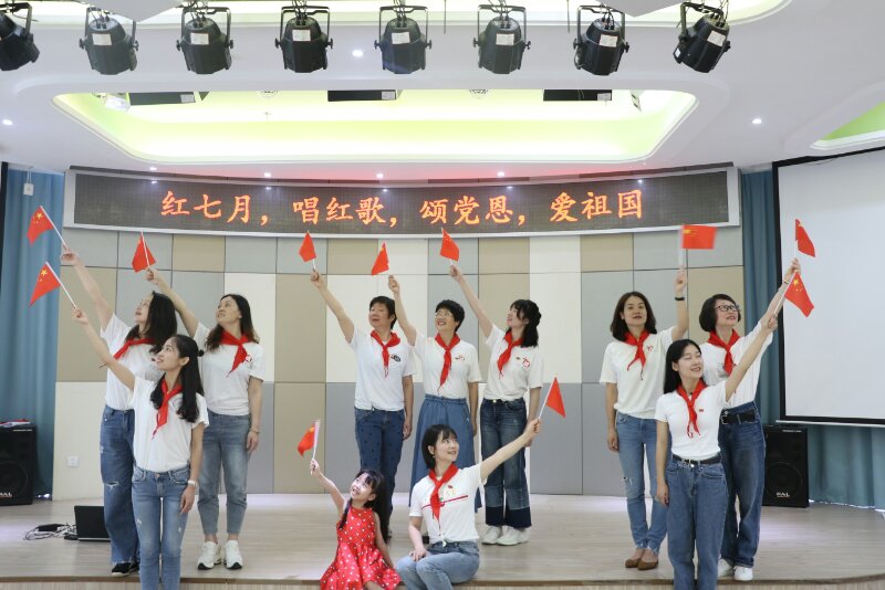 此外,星空平台附属实验幼儿园党支部组织开展“红七月、唱红歌、颂党恩、爱祖国”主题党日活动,为党的98岁华诞献礼。教育学院的学前教育专业的学生党员们和附属实验幼儿园三所园区的教师党员们共同参与,在不同的地点,用不同的方式同唱一首红歌。通过集体大合唱的形式,手挥国旗,群情激昂,讴歌新时代、展现新作为。活动过程中,见证20多年温大附幼发展的退休党员章云琴老师也满怀激情歌唱着,令在场的党员们深受教育和感动。