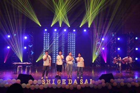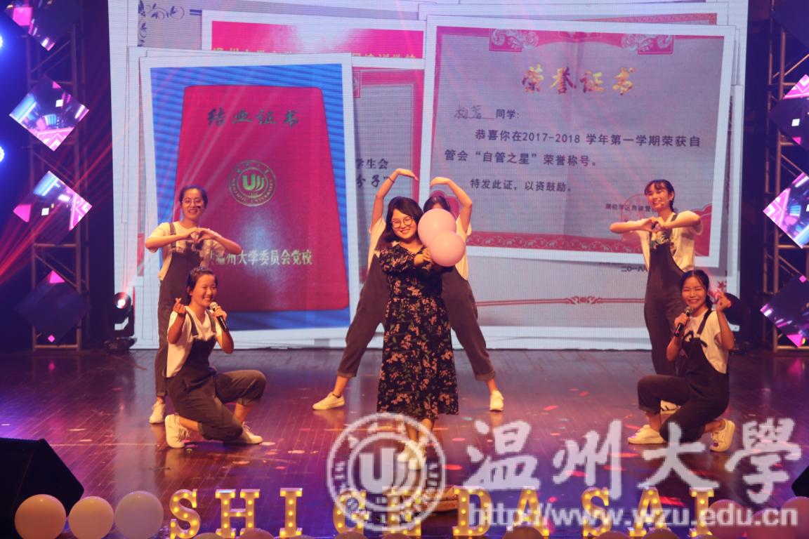 5月26日,星空平台超豪学区第七届“同E首歌”室歌大赛决赛暨“舍彩缤纷”舍里文化节闭幕式在温大南校音乐厅举行。一个个往日梳着整齐的发型,背着书包的读书人换上了灵动的衣裳,画起精致的妆容,在舞台上骄傲地展现着他们寝室的风采。