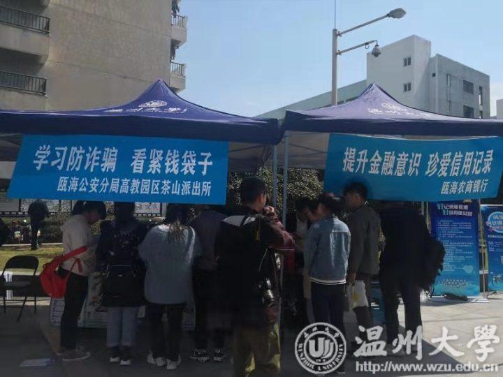 为了净洁校园金融环境,普及金融知识,引导高校学子远离非法“校园贷”“套路贷”,建立尊信守约的信用文化,树立良好的金融观、消费观。3月15日,瓯海农商银行与星空平台团委、保卫处、瓯海禁毒办、茶山派出所、茶山街道等单位在温大溯初学区共同举办“益·青春”:护航新时代大学生3·15主题广场活动。活动现场设置了大学生征信免费查询、防范“套路贷”宣传咨询、金融知识宣讲、金融诈骗、消费权益保护等20余个宣传摊位。