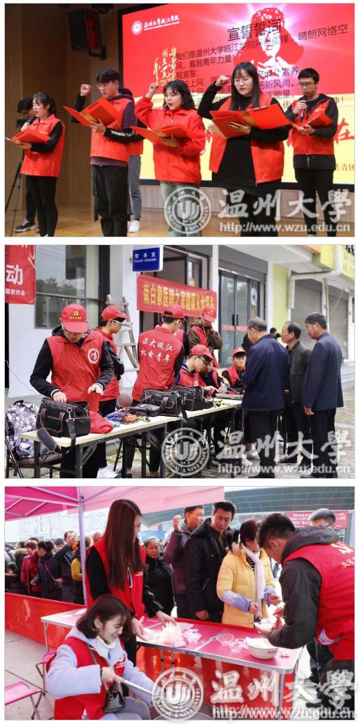 数理与电子信息工程学院阳光志愿者和党员志愿者参加万名义工助力建设“五美”新温州暨温州市广电市民义工团六周年大型公益活动。“做物理实验,导航科学精神,知防骗知识,护航家人安全”,数电学子志愿服务活动得到广大市民的喜爱和赞扬,同时,获得市“最美志愿者”的林丽丽老师在本次活动中还被百姓推荐为“身边的雷锋”。