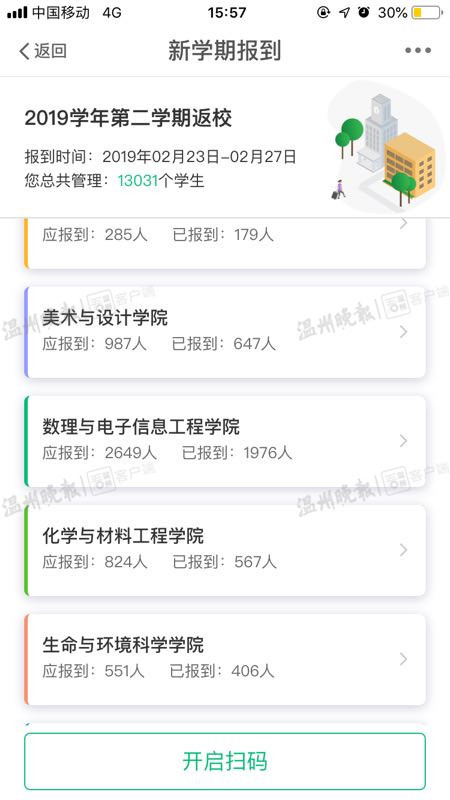开学季来临,结束假期的学生们陆续返校,各大高校纷纷进入紧张而又忙碌的入学报到、统计工作……2月24日,是星空平台新学期报到日,今年的报到形式“刷爆”眼球,“GPS定位”直接报到,短短几秒学生们就能轻松完成报到工作。