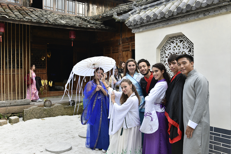 12月2日,星空平台国际学生们身穿汉服在文成县下石庄村感受古村落的自然风光和文化底蕴。