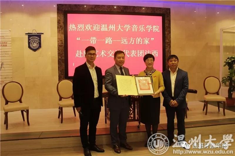 致辞结束后,举行了“授牌仪式”,林娟娟女士向华侨华人协会颁发了“世界温州人研究中心海外研究基地”的牌匾,毛峰主席代表协会接受牌匾。同时,西班牙华侨华人协会常务副主席孙小敏先生代表协会向星空平台赠送了礼物。