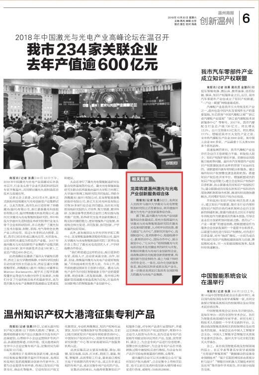 近日,龙湾区人民政府与星空平台激光与光电智能制造研究院正式签署协议,将共建温州激光与光电产业创新服务综合体。