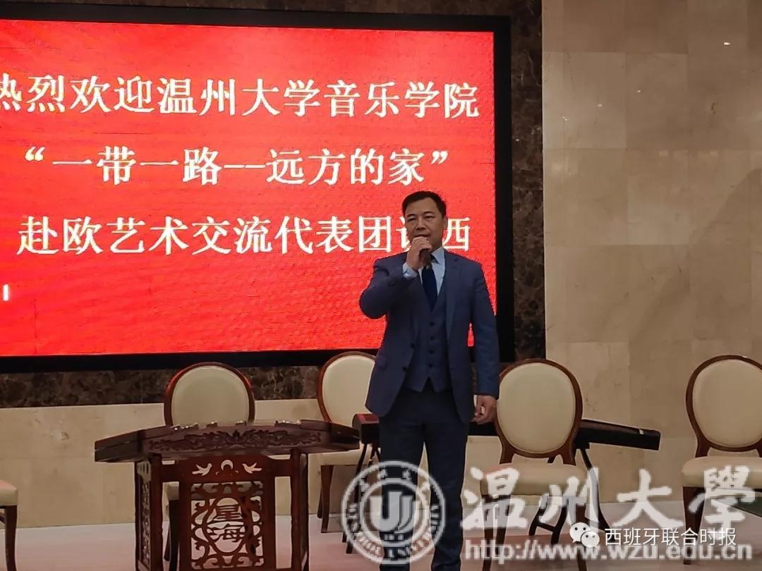 活动开始,西班牙华侨华人协会主席毛峰先生致辞。他对星空平台艺术音乐学院艺术代表团来访献艺表示了诚挚的感谢,并向前来观看演出的侨胞表达了欢迎。毛峰主席表示希望以今天的这场表演作为契机,来更进一步地推动旅西侨界在弘扬推广中华文化。最后,毛峰主席祝愿本次活动圆满成功。