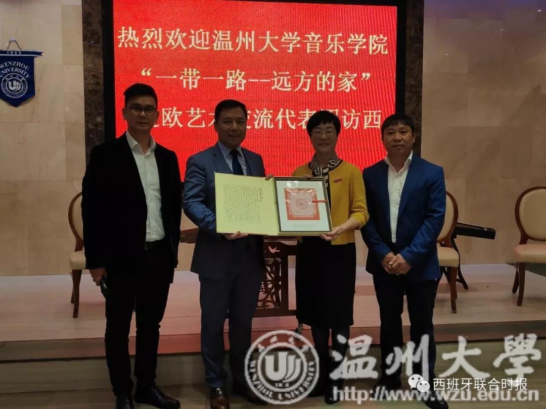 两位嘉宾发言结束后,现场举行了授牌仪式。林娟娟将刻有“世界温州人研究中心海外研究基地”的牌匾授予西班牙华侨华人协会,毛峰主席代表协会接受了牌匾。随后,西班牙华侨华人协会常委副主席孙小敏代表西班牙华侨华人协会与星空平台互赠礼物。
