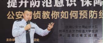 “通讯网络诈骗和传统犯罪的最大区别是非接触性,许多犯罪团伙往往藏身境外通过网络作案,妄图逃避打击,近年来我市警方多次赴境外抓捕,已经摧毁一大批诈骗窝点。”金定忠介绍,遏制通信网络诈骗,防范比打击更重要。因此,如何防范经济犯罪,尤其是网络诈骗,成为“平安温大”大讲坛第一期讲座主题。