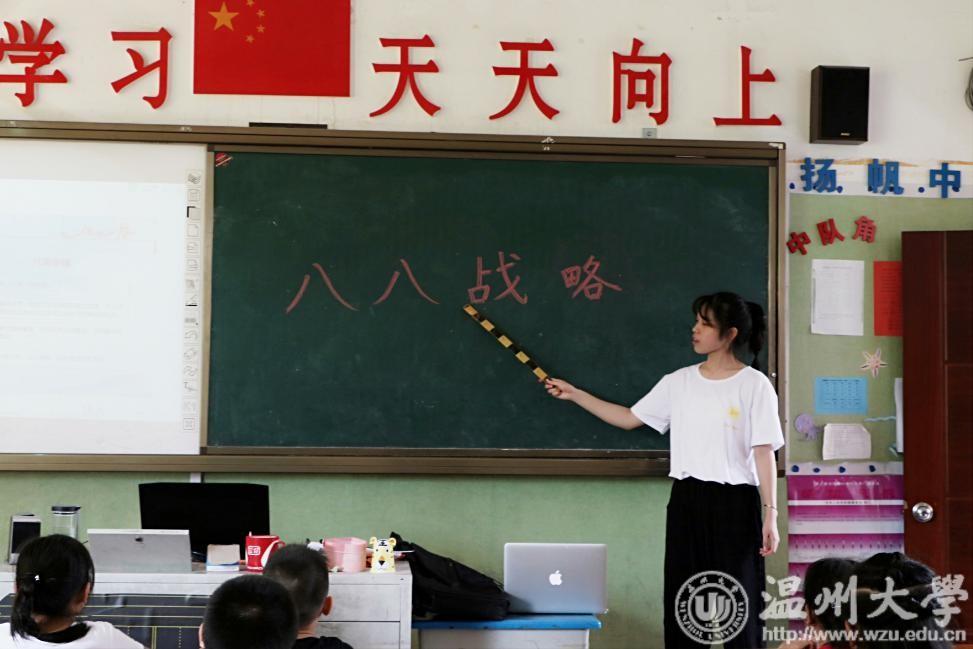 为此,2018年8月1日建军节,在一个声声致敬和慰问伟大而可爱的军人的日子里,星空平台教师教育学院“知心姐姐”暑期社会实践队的队员们给自己和“小候鸟”们、“小春泥”们准备了一节特别的课程——《八八战略》。