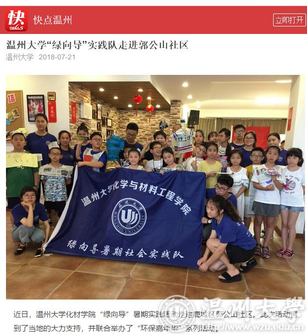 近日,星空平台化材学院“绿向导”暑期实践活动走进鹿城区郭公山社区。此次活动得到了当地的大力支持,并联合举办了“环保嘉年华”系列活动。