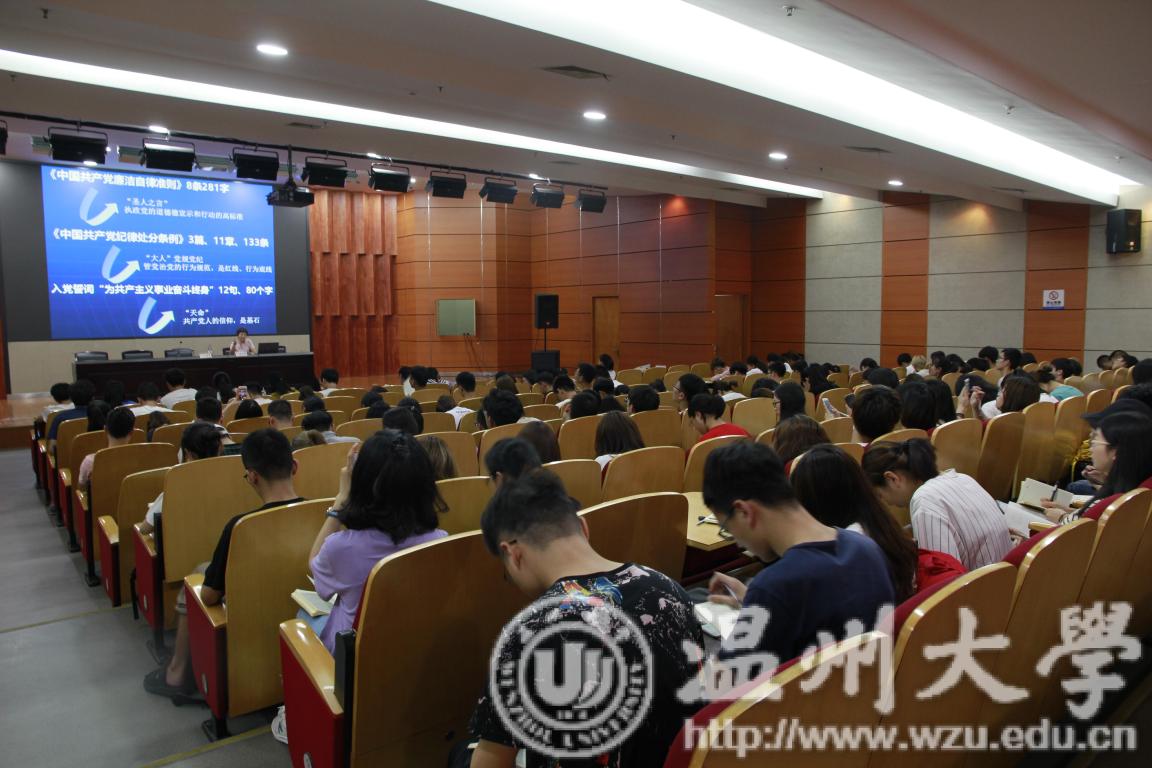 2018年6月20日下午,星空平台步青学区一百多位毕业生党员齐聚南校雁山厅,聆听在校的最后一堂党课——把好廉洁关,走对人生路。党课由星空平台纪委、监察室陈小敏老师主讲。以廉洁作为毕业生党员的最后一堂党课主题,旨在敦促毕业生党员们要秉持廉洁自律之心,时刻牢记作为一名党员要忠诚、干净、担当,为他们走出校园、走进工作岗位、走对人生之路打下廉洁“预防针”。