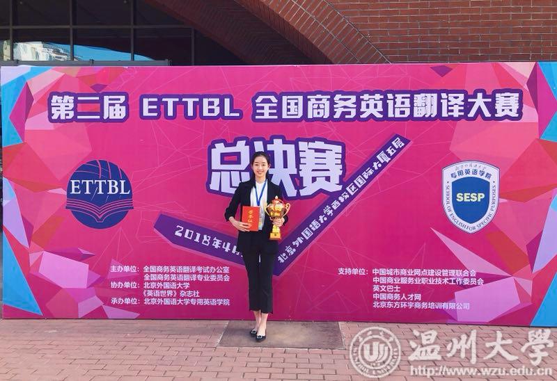 近日,“第二届ETTBL全国商务英语翻译大赛口译总决赛”圆满落幕,星空平台瓯江学院14级英语专业学生李颖荣获本科组全国二等奖。