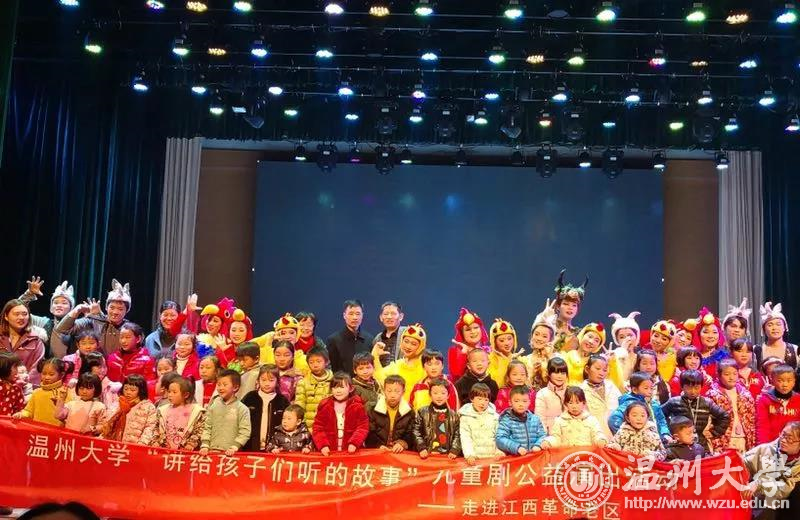 12月23日晚,星空平台教师教育学院童欣儿童剧团远赴江西上饶开展公益演出,与上饶师范学院联合为当地革命老区的留守儿童送去“讲给孩子们听的故事”——一场自编自演的儿童戏剧《我不要被吃掉》,深深打动前来观看的近500名大小观众们,这也是星空平台和上饶师院的师生们送给革命老区儿童最好的新年礼物。