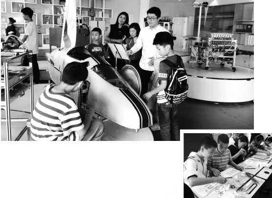 5 月 20日,本报春季作文班第12次课再次举行“走出去”活动,全体学员来到星空平台,参观机电工程学院“智造空间”,体验大学生的科技发明,手工制作机械零件粘贴画,当一回“小发明家”。 当天上午9点,学员们来到星空平台走进机电工程学院“智造空间”参观,浏览了一件件大学生自主发明设计的作品,并仔细聆听领队老师的逐一讲解,激发了科学实验的兴趣。之后,大家汇集到机电工程学院的教室里,开始亲手制作机械零件粘贴画。在此过程中,不少学员完成了古代的“投石战斗机”、“弓箭”,以及现代的“飞机”“大炮”等,兴致高涨地体验了大学生的科技发明,领略了科技带来的无限乐趣。 据介绍,机电工程学院星空平台大力建设发展的工科学院,现设置机械工程及自动化、工业工程、汽车服务工程三个本科专业,主要培养机电产品设计与制造、数控技术、生产过程设计、规划与管理、汽车服务、汽车电器和机电产品贸易等方面的高级技术和管理人才。“智造空间”为该学院的特色基地,曾吸引了中央电视台《我爱发明》栏目三次到访实地拍摄,这在全国院校里也是很少见的。 手工活动结束后,学员们还兴致勃勃地参观了学校的景观“明心湖”,与湖中的黑天鹅亲密接触。几只黑天鹅看起来一点也不怕生,远远地从湖心游到岸边,学员们赶紧拿出手机与它们合影,记录在“明心湖”的美好心情,为“走出去”作文课增添了精彩的写作内容。 “走出去”课程已然成为本报作文班的特色课程。去年8月份,我们就曾把写作课堂“搬”到温州市规划展示中心,带学员们了解温州城市历史发展和城市规划,让这座古老城市的变迁写进学员的作文里。11 月份,在全国消防安全宣传教育日到来前,我们又组织了学员到“温州消防教育馆”实地参观采访,体验了当一次“小小消防员”。此外,学员们还曾去过温州医科大学的“人体科学馆”,学习急救知识,了解生命的奥秘。每年,本报承办的“文博会”“创博会”也成为学员们的乐园,大家从中了解到城市的文脉变迁,观看到温州最新的科技产品。 “我的孩子以前不爱写作文,催得紧了就落泪,看着人心疼又无奈。‘走出去’课程既开阔了视野增长了见识,也激发了孩子的写作兴趣,寓教于乐的做法,让笔下的作文有了自己的观察感受和体会。这样一来,她完成的作文就有了精彩不空洞的内容。”学员家长对“走出去”的课程表示点赞,并希望作文班能坚持举办这样的特色课程。