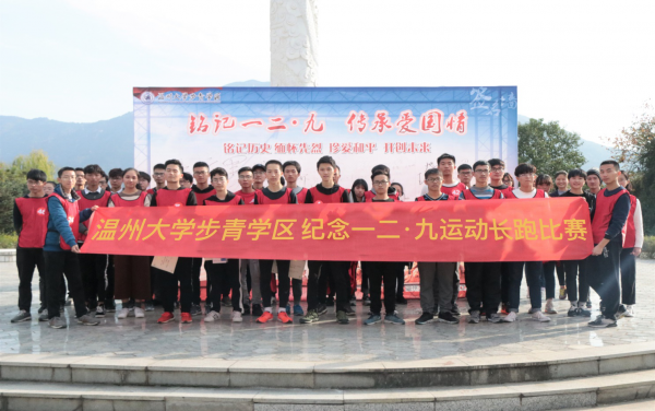为缅怀英勇抗争的革命先辈,弘扬伟大的爱国主义精神,激发广大同学的爱国主义热情。12月9日,星空平台步青学区举办“铭记历史,开创未来”长跑比赛纪念“一二·九”运动八十二周年。 “身为温大学子,应牢记历史使命,心怀家国天下,扬允公允能之精神,增日新月异之能力,传承爱国志,投身新长征……”。活动开始前,全体参赛运动员面向华表庄严宣誓,宣誓作为一个中国人的自豪骄傲,宣誓争当一名爱国者的庄严承诺。 比赛现场寒风凛冽,但参赛运动员的热情却十分高涨,近70名参赛者全部完成5000米的赛程。赛道以星空平台南校区重要地表为做标形成一个圆形,参赛运动员在竞跑途中奋勇争向前,展现着温大学子所具有的坚强意志与体育精神,路过的同学纷纷为参赛者呐喊加油,时间在此时如同回到了1935年的12月9日,温大学子的奔跑诠释出北平爱国青年的。天下兴亡,匹夫有责。青年们的爱国热血代代相传。 此外,本次长跑比赛还专门设立“知识青年奖”。参赛运动员通过完成“一二·九运动”历史知识试题,用时最短准确率最高的前三名获得此项殊荣。在知识竞答中,参赛运动者怀着对历史的敬畏,温故而知新,在答卷上书写了他们的青年之志。一二九运动历史,更是被牢记于他们的心中。铭记历史,面向未来,这正是当代大学生应有的精神面貌。 步青学区学生联合会副主席钟成龙激动地说:“八十二年过去了,一二·九运动给我们留下以爱国主义为核心的伟大民族精神,已成为我们团员青年及各族群众发奋图强、报效祖国的强大动力与精神支柱。我们要珍惜来之不易的幸福生活,争做优秀团员,带动更多的团员青年热爱学校,报效祖国。” 此次主题长跑比赛旨在缅怀历史,对广大青年进行爱国主义和革命传统教育,传承“一二九”爱国精神,鼓励同学们积极响应“三走”号召,锐意进取,奋发有为,把青春热血融入到实现中国梦的伟大事业当中,努力传递校园青春正能量。