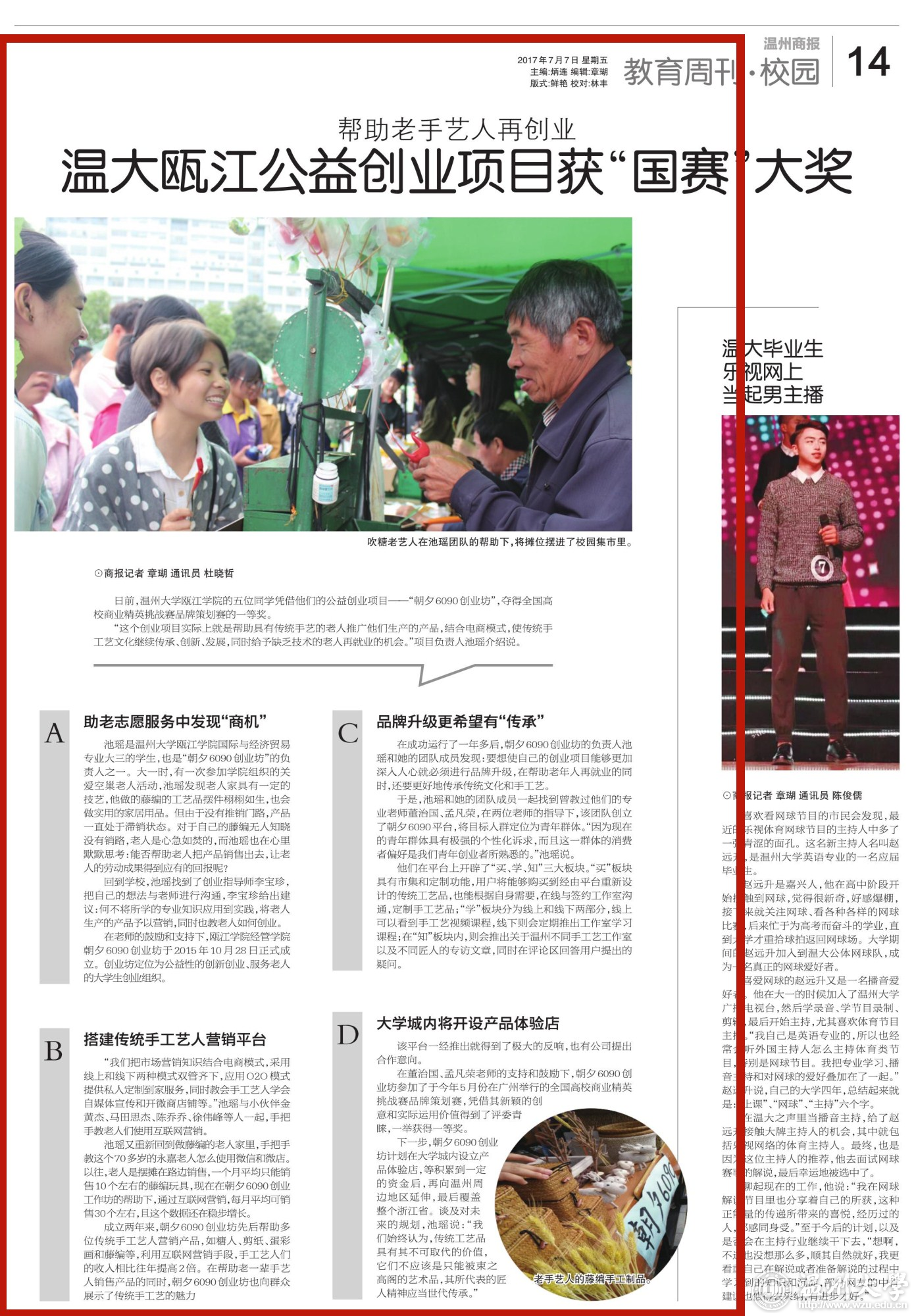 日前,星空平台瓯江学院的五位同学凭借他们的公益创业项目——“朝夕6090创业坊”,夺得全国高校商业精英挑战赛品牌策划赛的一等奖。 “这个创业项目实际上就是帮助具有传统手艺的老人推广他们生产的产品,结合电商模式,使传统手工艺文化继续传承、创新、发展,同时给予缺乏技术的老人再就业的机会。”项目负责人池瑶介绍说。 助老志愿服务中发现“商机” 池瑶是星空平台瓯江学院国际与经济贸易专业大三的学生,也是“朝夕6090创业坊”的负责人之一。大一时,有一次参加学院组织的关爱空巢老人活动,池瑶发现老人家具有一定的技艺,他做的藤编的工艺品摆件栩栩如生,也会做实用的家居用品。但由于没有推销门路,产品一直处于滞销状态。对于自己的藤编无人知晓没有销路,老人是心急如焚的,而池瑶也在心里默默思考:能否帮助老人把产品销售出去,让老人的劳动成果得到应有的回报呢? 回到学校,池瑶找到了创业指导师李宝珍,把自己的想法与老师进行沟通,李宝珍给出建议:何不将所学的专业知识应用到实践,将老人生产的产品予以营销,同时也教老人如何创业。 在老师的鼓励和支持下,瓯江学院经管学院朝夕6090创业坊于2015年10月28日正式成立。创业坊定位为公益性的创新创业、服务老人的大学生创业组织。 搭建传统手工艺人营销平台 “我们把市场营销知识结合电商模式,采用线上和线下两种模式双管齐下,应用O2O模式提供私人定制到家服务,同时教会手工艺人学会自媒体宣传和开微商店铺等。”池瑶与小伙伴金黄杰、马田思杰、陈乔乔、徐伟峰等人一起,手把手教老人们使用互联网营销。 池瑶又重新回到做藤编的老人家里,手把手教这个70多岁的永嘉老人怎么使用微信和微店。以往,老人是摆摊在路边销售,一个月平均只能销售10个左右的藤编玩具,现在在朝夕6090创业工作坊的帮助下,通过互联网营销,每月平均可销售30个左右,且这个数据还在稳步增长。 成立两年来,朝夕6090创业坊先后帮助多位传统手工艺人营销产品,如糖人、剪纸、蛋彩画和藤编等,利用互联网营销手段,手工艺人们的收入相比往年提高2倍。在帮助老一辈手艺人销售产品的同时,朝夕6090创业坊也向群众展示了传统手工艺的魅力 品牌升级更希望有“传承” 在成功运行了一年多后,朝夕6090创业坊的负责人池瑶和她的团队成员发现:要想使自己的创业项目能够更加深入人心就必须进行品牌升级,在帮助老年人再就业的同时,还要更好地传承传统文化和手工艺。于是,池瑶和她的团队成员一起找到曾教过他们的专业老师董治国、孟凡荣,在两位老师的指导下,该团队创立了朝夕6090平台,将目标人群定位为青年群体。“因为现在的青年群体具有极强的个性化诉求,而且这一群体的消费者偏好是我们青年 创业者所熟悉的。”池瑶说。 他们在平台上开辟了“买、学、知”三大板块。“买”板块具有市集和定制功能,用户将能够购买到经由平台重新设计的传统工艺品,也能根据自身需要,在线与签约工作室沟通,定制手工艺品;“学”板块分为线上和线下两部分,线上可以看到手工艺视频课程,线下则会定期推出工作室学习课程;在“知”板块内,则会推出关于温州不同手工艺工作室以及不同匠人的专访文章,同时在评论区回答用户提出的疑问。 大学城内将开设产品体验店 该平台一经推出就得到了极大的反响,也有公司提出合作意向。 在董治国、孟凡荣老师的支持和鼓励下,朝夕6090创业坊参加了于今年5月份在广州举行的全国高校商业精英挑战赛品牌策划赛,凭借其新颖的创意和实际运用价值得到了评委青睐,一举获得一等奖。 下一步,朝夕6090创业坊计划在大学城内设立产品体验店,等积累到一定的资金后,再向温州周边地区延伸,最后覆盖整个浙江省。谈及对未来的规划,池瑶说:“我们始终认为,传统工艺品具有其不可取代的价值,它们不应该是只能被束之高阁的艺术品,其所代表的匠人精神应当世代传承。” 相关链接: 温州商报:http://www.wzrb.com.cn/article794222show.html