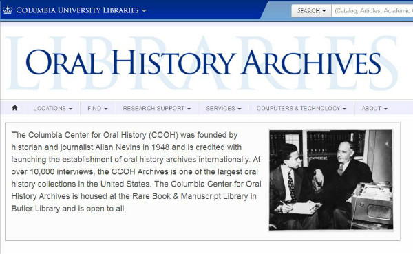 哥伦比亚大学口述历史中心主页截图