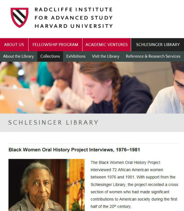 拉德克利夫学院“黑人女性口述历史计划”主页截图