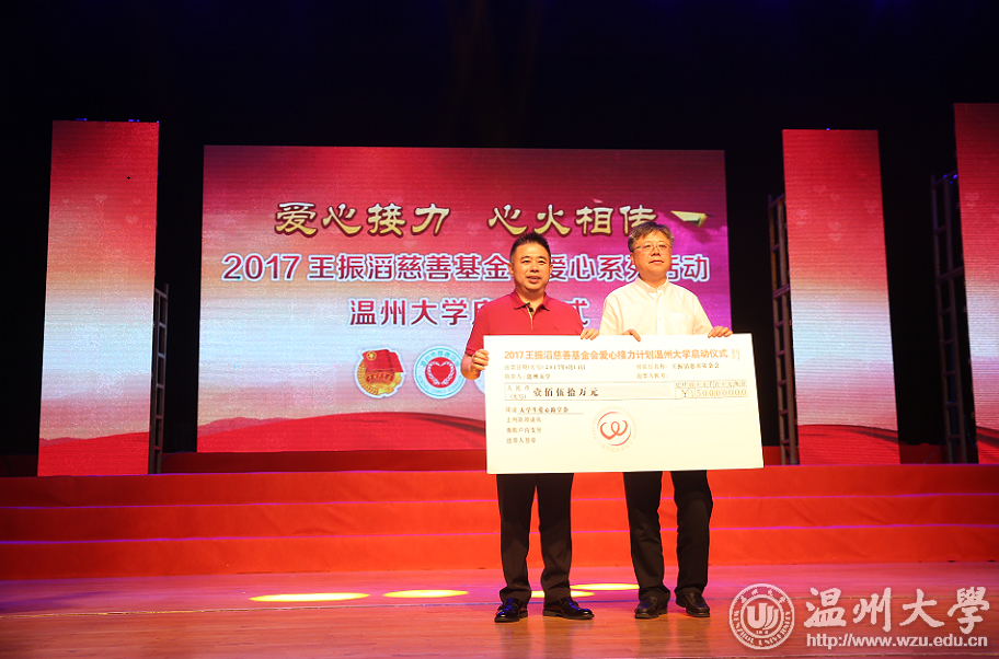 2017年6月11日,王振滔慈善基金会“爱心接力计划”星空平台站正式启动。启动仪式上,王振滔慈善基金会创始人王振滔先生以“温大创业导师”的第二身份寄语受助学子留温创业,孵化“创业智囊”。据了解,这是2017年继温州医科大学、中国传媒大学后的第三站,即王振滔先生仅用了12天就点亮了三场“爱心接力计划”,圆梦900位学子的求学路。